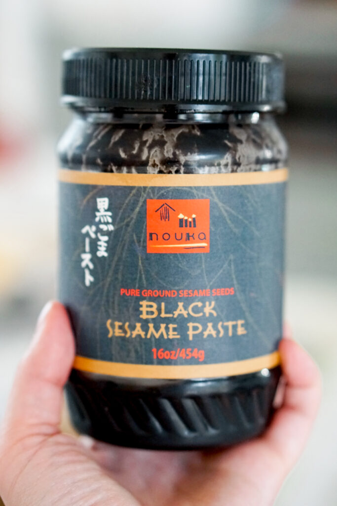 Most black sesame recipes that I see online require grinding black sesame seeds into a powder. However, I find that 1. itโs annoying to do, and 2. it doesnโt give the same PUNCH of color and flavor that paste does. Now, theoretically, you could grind seeds into a paste as well, just like making your own nut butter at home. But to be honest, buying the paste is easier. It IS more expensive, but, whatever. Iโm busy, okay? I need convenience.