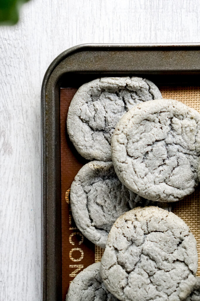 These black sesame cookies are a super easy twist on classic sugar cookies. This recipe uses black sesame paste so you donโt need to grind your own seeds. Nutty and naturally gray colored, these cookies look just like the moon!