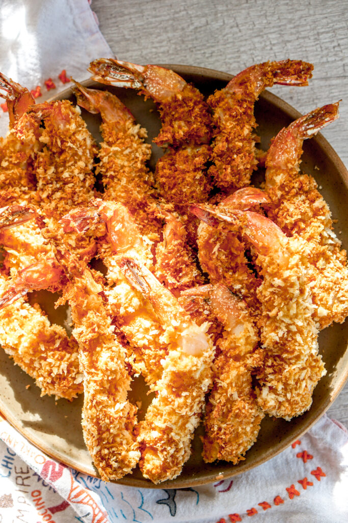 As the title describes, ebi fry is shrimp thatโs been breaded in Japanese panko bread crumbs and then typically deep fried. Itโs a common dish in casual dining and popular with kids. In America, Iโve often seen ebi fry in kids menus at Japanese restaurants. I typically make ebi fry on Japanese holidays like Childrenโs Day and on New Years. Iโd love to make it more often, because my 3 year old can devour practically half a pound of shrimp by herself, but I hate dealing with deep frying. GOOD THING I HAVE AN AIR FRYER NOW! LIFE CHANGING!