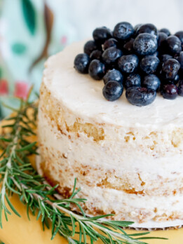 - Finish decorations to your liking! I used a pile of blueberries on top and a few sprigs of rosemary on the bottom.