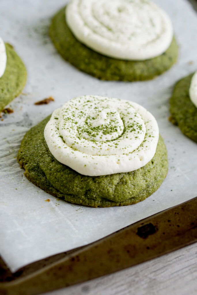 But itโs not enough. Because sometimes you want a matcha cookie recipe thatโs almost like a slice of cake, with a soft chewy texture and light whipped frosting thatโs not too sweet. And thus this recipe was born.