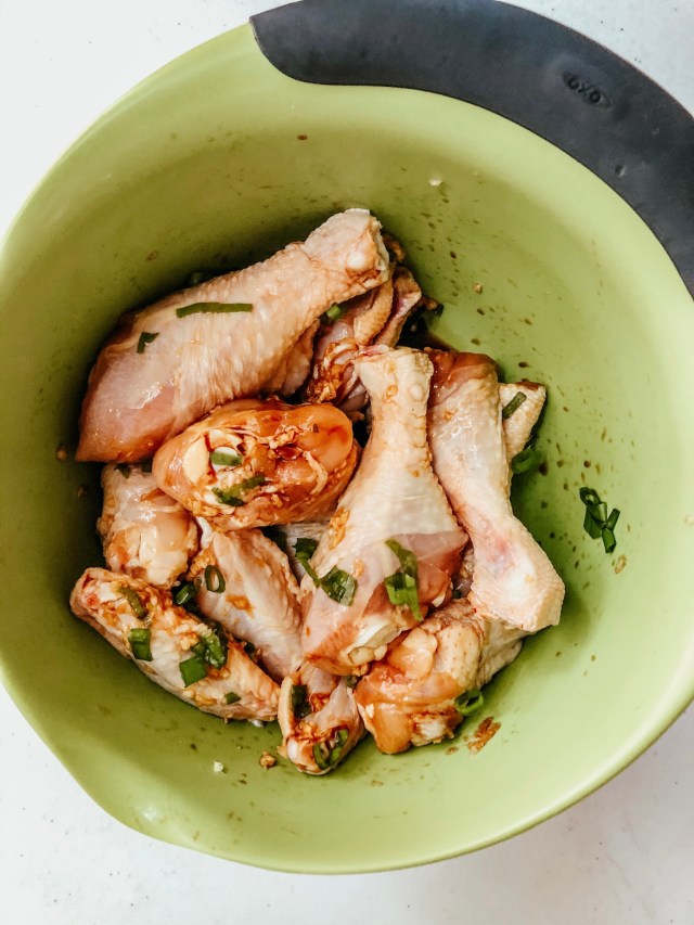This fried chicken is SUPER flavorful, and it all comes down to the marinade. For that fragrant Chinese flavor, I use scallions, ginger, garlic, and soy sauce. You can see in the recipe below that I have added buttermilk as optional: if you use it, it helps tenderize the chicken, like in a typical southern fried chicken recipe. However, my grandma actually normally makes it without, and it tastes just fine.