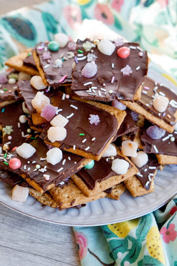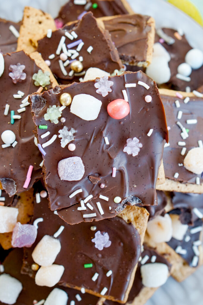 This chocolate bark recipe is actually somewhat of cross between chocolate bark and chocolate covered graham crackers. If youโre in the Seattle area, I LOOOVE the chocolate covered graham crackers from Boehmโs chocolates.