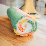 Carefully roll the warm cake starting from the scored edge. Leave the cake in the parchment paper in a rolled log to cool completely.